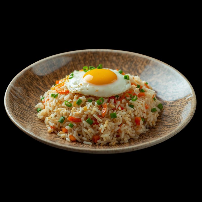 Rice stir-fried with scrambled egg and seasoning